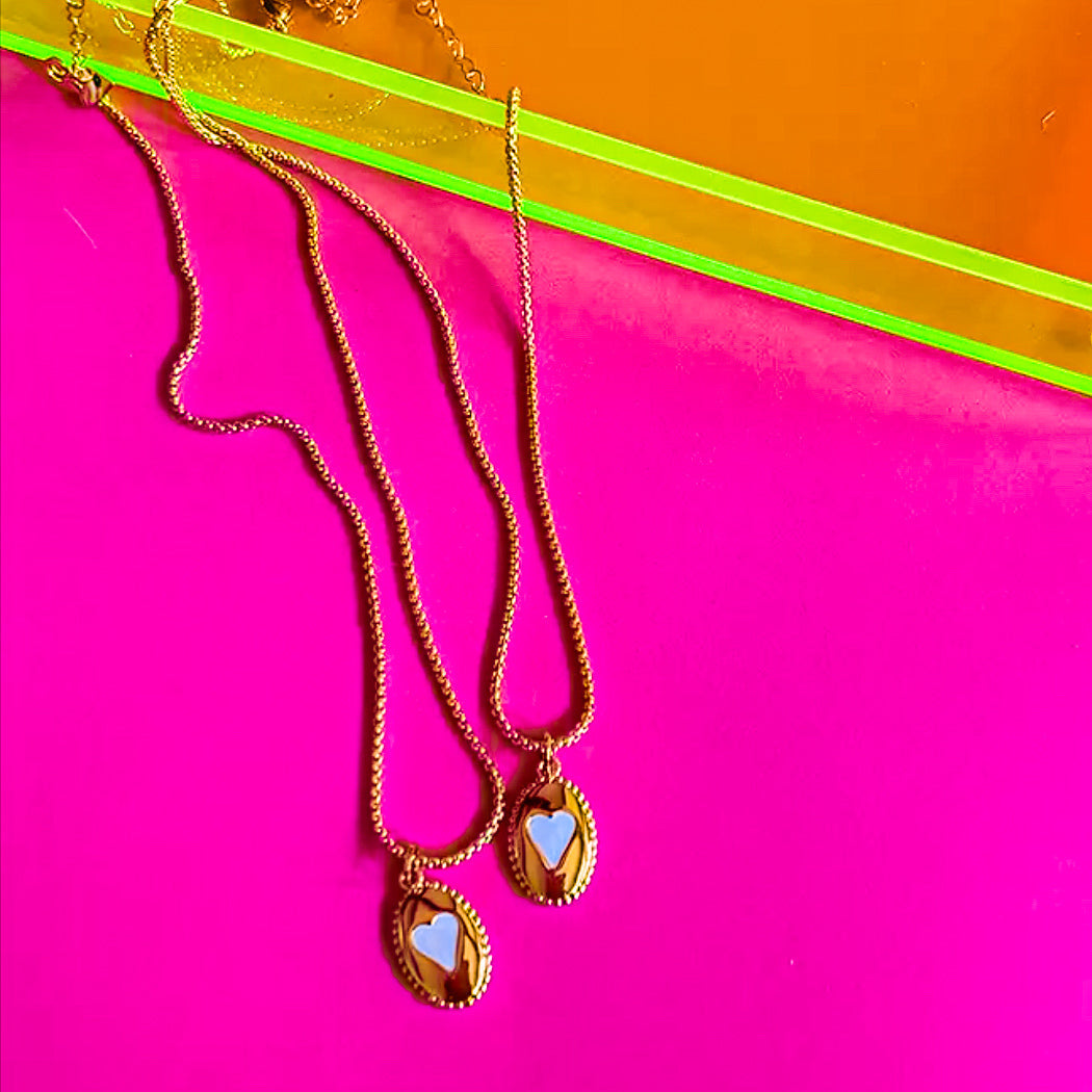 - Material: Made from high-quality brass and dipped with 14k gold for a rich, shimmering & enduring finish. White hand painted enamel heart