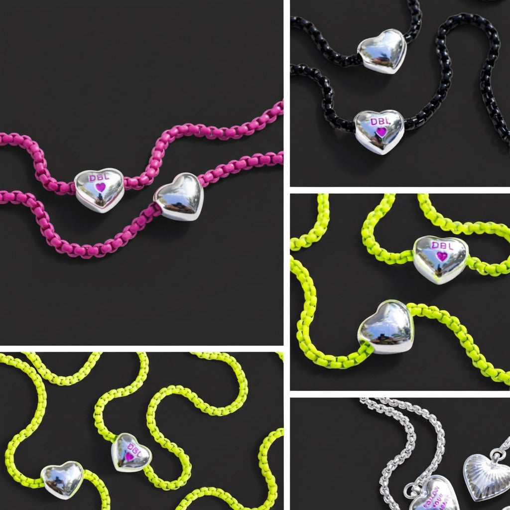 Introducing the DBL Heart Charm Necklace, a piece that is as radiant and inspiring as the woman it was designed for. Created in honor of Krista—our queen of hearts and the founder of DBL—this necklace captures her favorite colors and her unwavering spirit.