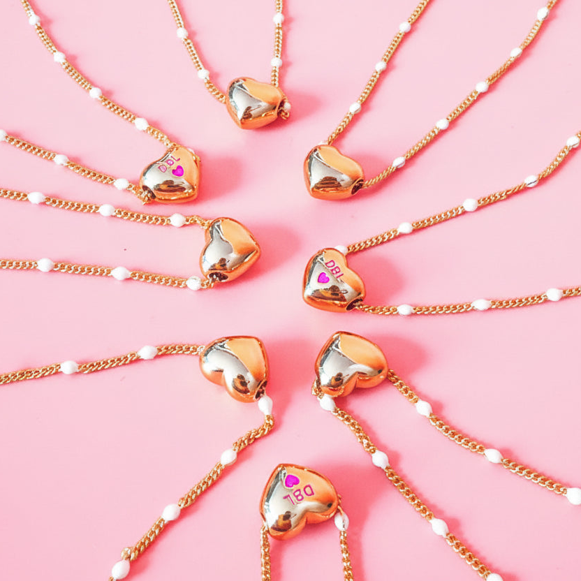 A delicate white ball chain paired with our signature DBL heart — a gentle reminder to follow your heart, dream big, believe in yourself, and live like there’s no tomorrow. 💛