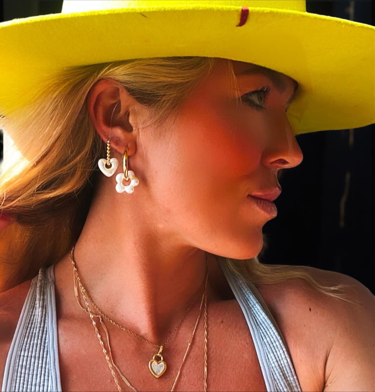 Our beautiful Heart hoop earrings embody a spirit of playfulness and freedom, carrying the empowering message of “SELF LOVE & JOY .” These whimsical earrings invite you to run barefoot in the summer sun, chase your dreams, and reconnect with your inner child.