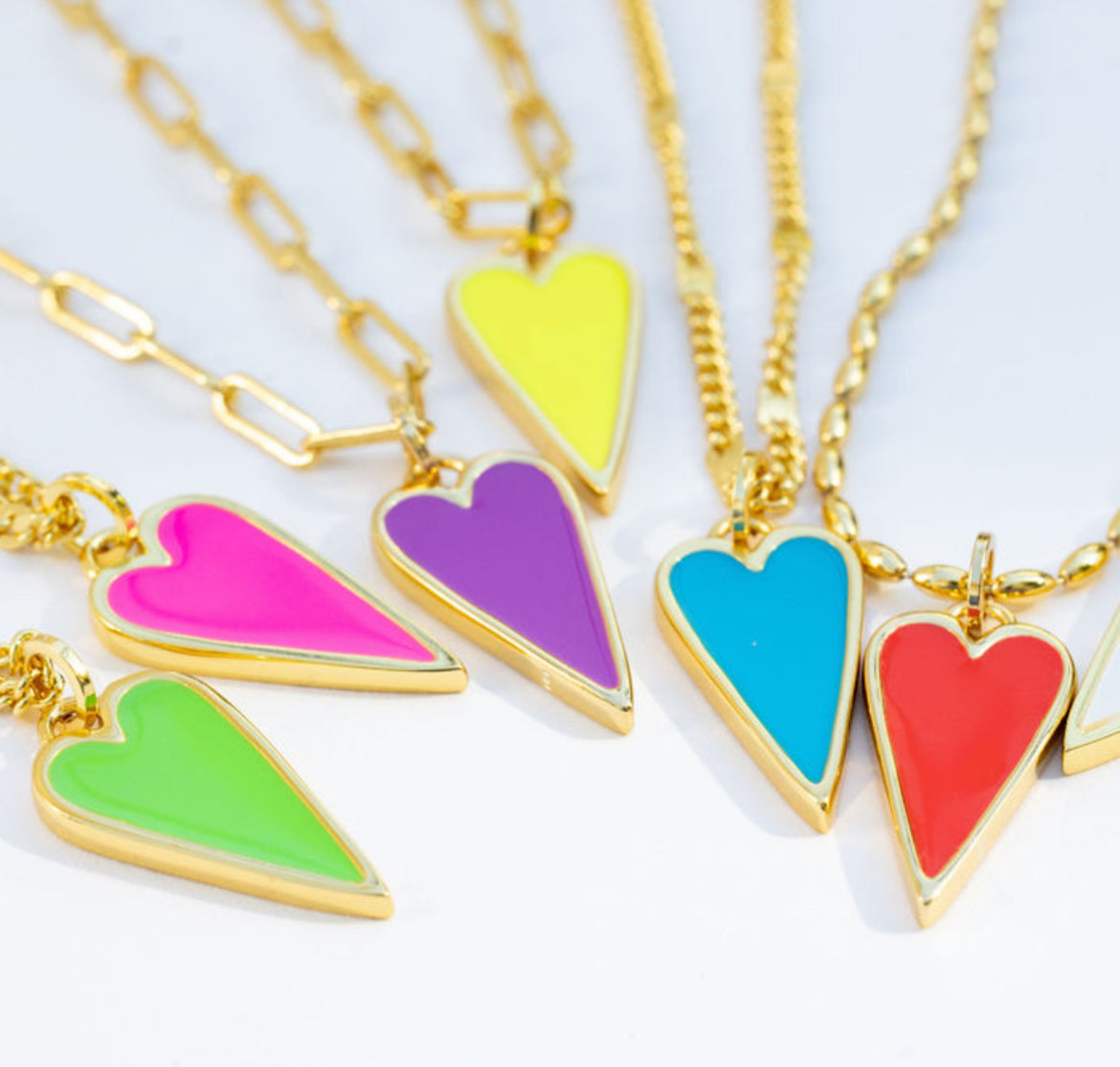 Ready to shine brighter? Our double-sided, colorful heart necklace is here to bring out your inner sparkle & vibrant beauty !!!