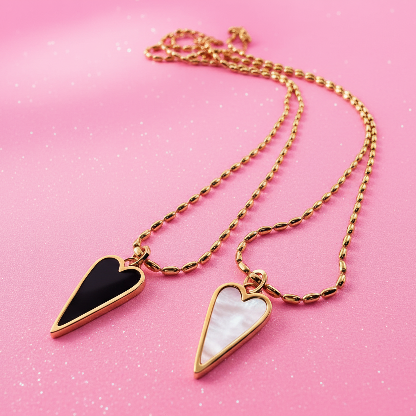 Introducing our WILD AT HEART double-sided necklace, featuring bold black onyx on one side & luminous mother of pearl on the other. This dynamic duo beautifully represents the balance of light and dark, day and night, hardships and successes. Together, they serve as a powerful reminder of your strength & resilience. Embrace both sides of your journey—never tame the wild within you. Remember, in every darkness, the sun will rise again, illuminating the path ahead. Wear this necklace as a symbol of your unwavering spirit and the beauty found in your own unique journey!!